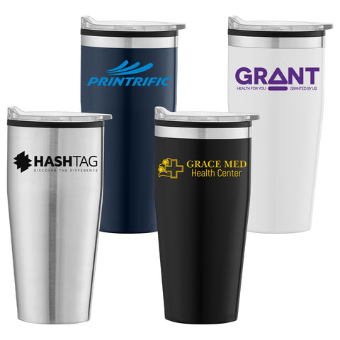 Quench your thirst for a successful promo campaign! Our Jasper 20-ounce Stainless Steel Tumbler with Plastic Interior will elevate your clients' drinkware selection and provide eye-catching brand exposure. This double-wall tumbler has a premium look and a value price point that will help maximize the impact of your promo budget. The sleek design is perfect for highlighting your brand logos, message, and more. Customize with your 1-color silkscreen logo. Complies with Prop 65. 7.48" W x 3.43" Diameter