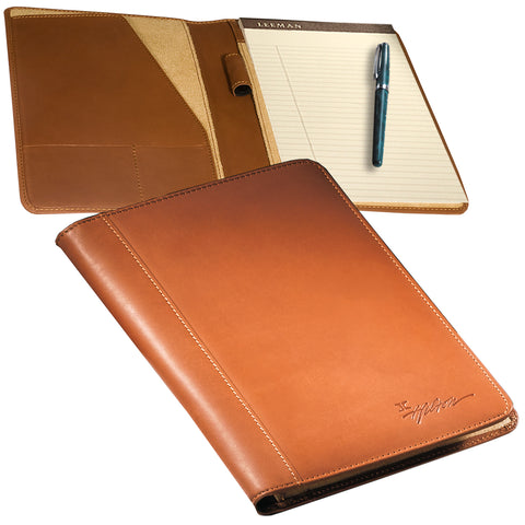 This sueded full-grain leather portfolio has perimeter stitching accents. It includes a 5"x8" ruled notepad with approximately 40 sheets. Complies with Prop 65. 5.75" W x 8.875" H x 0.25" D