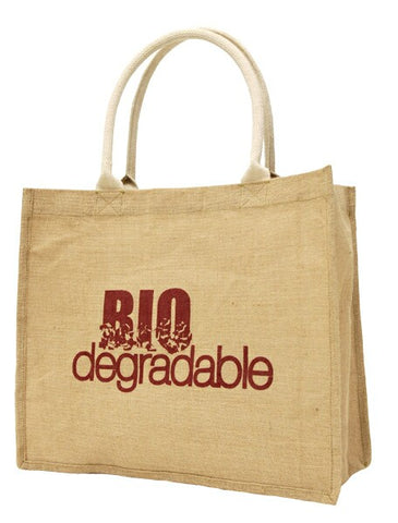 Made from natural and biodegradable jute material. Features comfort grip cotton handle and inside lamination for enhanced durability. Large size makes it a great every day tote. Not suitable for fine printing. Fabric not suitable for fine printing. 16" W x 14" H x 6" D