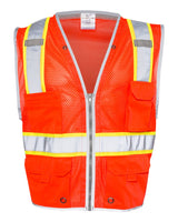 Sleeveless, 100% Polyester Mesh, Zipper Front Closure, Reflective Material, Cargo Pocket, Radio Pocket, 2 Tier Pencil Pocket, Patch Pocket, Ultra-Cool™, Adjustable Flap, Brilliant Trim, Radio Pouch. Complies with ANSI.