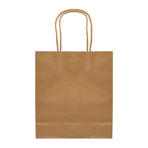 This medium-size kraft paper bag is recyclable and features color-match twisted paper handles that make it easy to carry, while showing off a 1-color silkscreen imprinted logo on your choice of 4 great colors. Complies with Prop 65. 7.5" W x 8.3" H