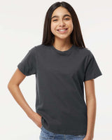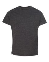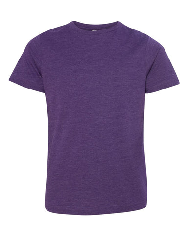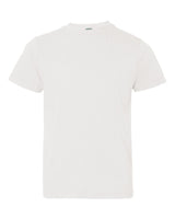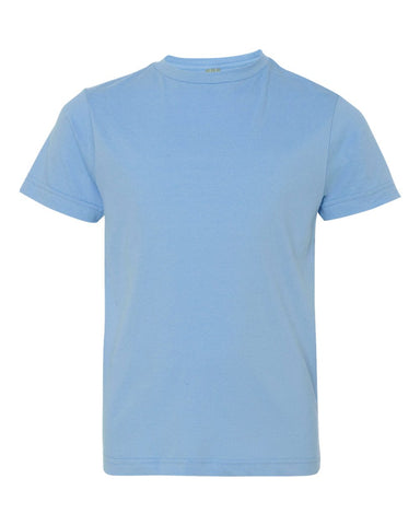Kids just want to have fun colors to choose from in soft huggable cotton. It is made of 4.5 Oz., 100% combed ring spun cotton, 30 singles. White is sewn with 100% cotton thread. Features topstitched rib knit collar, double needle hem, sleeve and bottom, EasyTear™ label. Ash is 99/1 combed ringspun cotton/polyester. Heather is 90/10 combed ringspun cotton/polyester. CVC colors are 60/40 combed ringspun cotton/polyester. Complies with Prop 65.