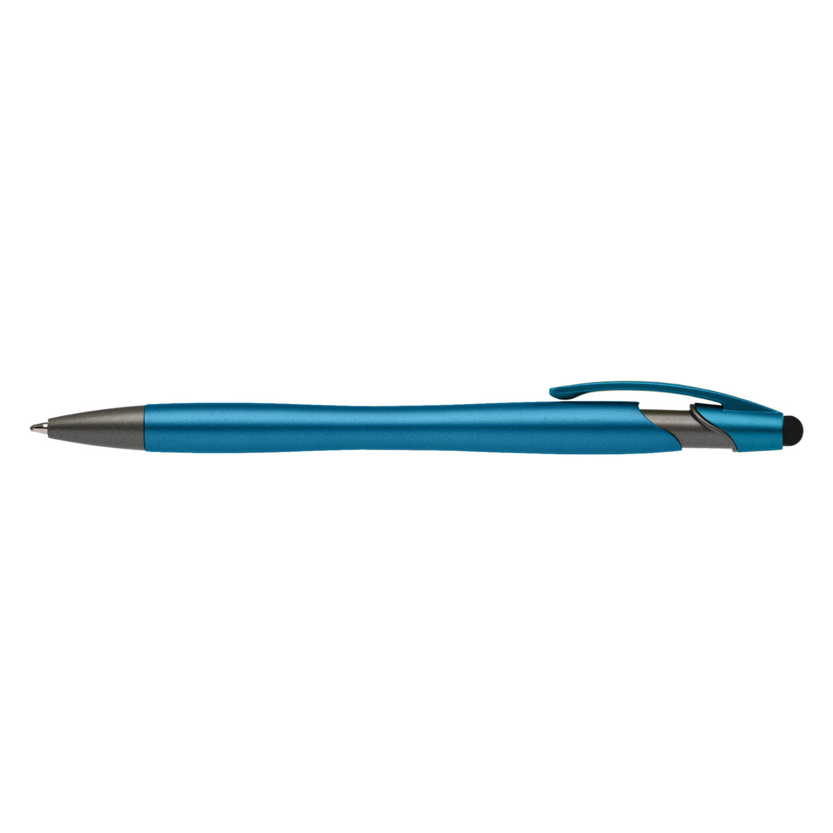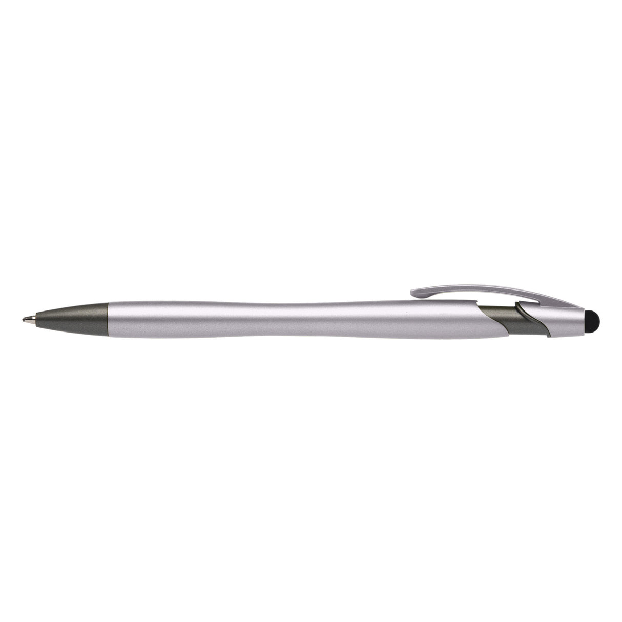 Our new La Jolla Gunmetal Gray Pen with Stylus has contemporary Gunmetal Gray accents that will grab extra attention from customers and prospects. This metallic pen with a stylus at the top is the perfect 2-in-1 advertising gift. It features a sleek barrel in vibrant colors, matching clip, and a stylus for touchscreens. Best of all, you can customize it with your 1-color silkscreen imprint. Pick up a bundle today to have your customers thanking you for adding style and color to their days! Complies with Prop 65. 5.65" W x 0.41" D