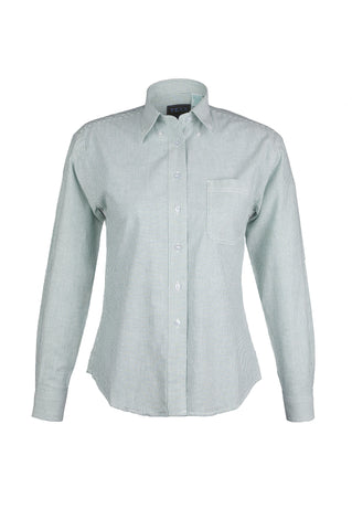 Ladies COTTON BLEND Oxford Striped Long Sleeve Shirt (GREEN) (XS-3XL)