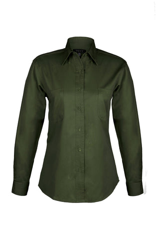 Ladies Cotton Blend Twill Long Sleeve Shirt (GREEN) (XS-3XL)