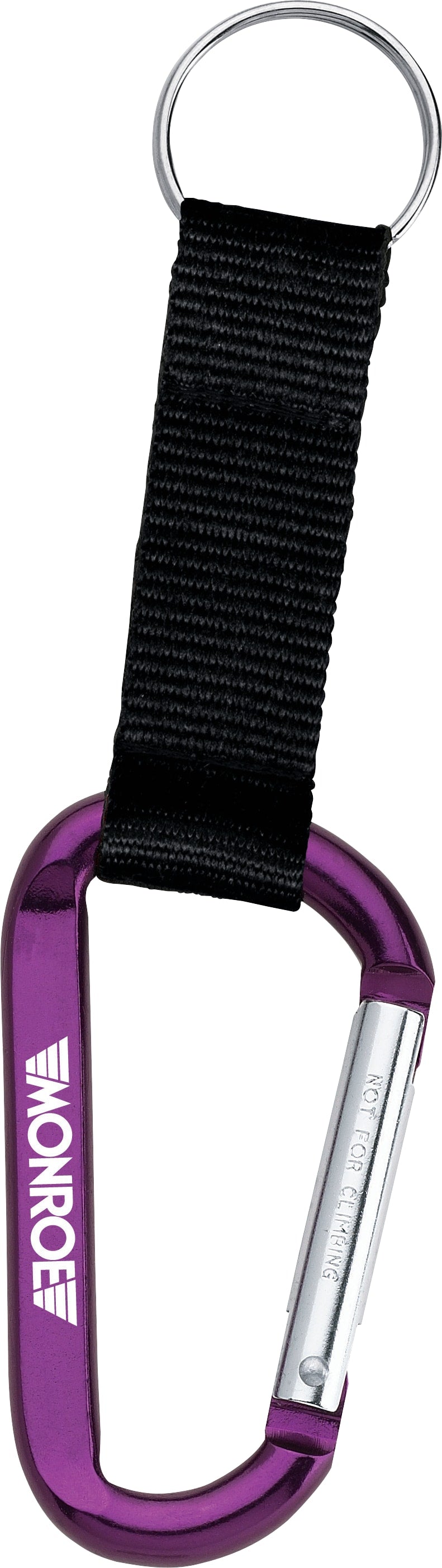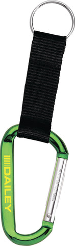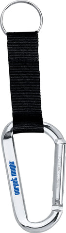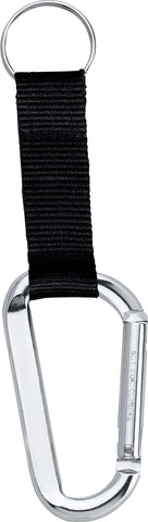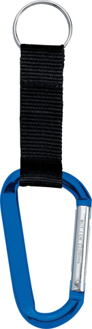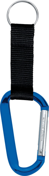 The Large Carabiner Key Ring features a woven nylon strap. Laser engraving is recommended. The 8mm carabiner is not intended for climbing. The carabiner key ring also features a metal split key ring with room for home, office, or car keys. 0.25" D x 1.69" W x 2.94" H