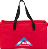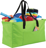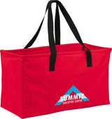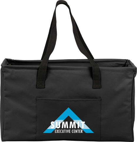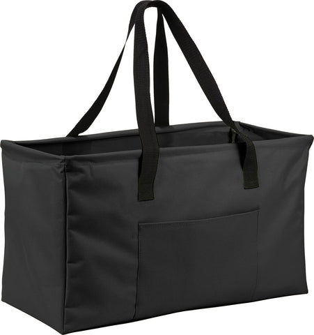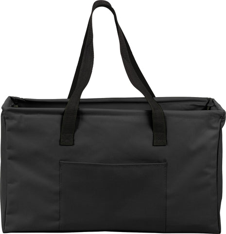 The Large Utility Tote features the largest open main compartment of the utility collection. A wire rim additionally provides this tote with enhanced structure and added stability. 11" handle drop. Complies with Prop 65. 9.5" D x 20.5" W x 12" H