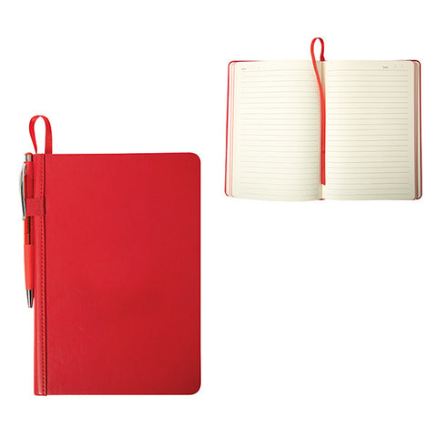 Notebook journals has 96 sheets of edge colored 80G lined paper, matching colored elastic pen loop on top spine, ribbon page marker and Mardi Gras® Clipper matching coloured pen. Complies with Prop 65. 5.75" W x 8.25" H x 0.5" D