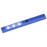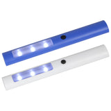 The Magnetic Light Stick has a sleek contemporary design, with three LED lights totaling 9 lumens, in both continuous and flashing light modes, and two magnets on back side. Powered by 4 button cell batteries, inserted. Complies with Prop 65. 6.25" L x 0.875" W x 0.625" H