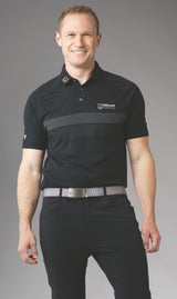 Men's Polo featuring: 100% Polyester,Moisture Wicking, Anti-Static, Self fabric collar, High-low hem with side slits The Mason Polo flashes style that can be worn every day. A subtle, dotted chest pattern elevates this classic men's golf polo. It's packed with performance enhancing features, like a lightweight feel, moisture wicking fabric, and side slits that allow for easy, unrestrictive movement.