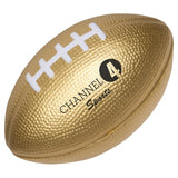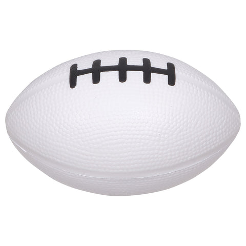4" Football shaped polyurethane stress reliever. White stress relievers may discolor over time. Please store them in their plastic bags away from direct sunlight and distribute within 3 months. Complies with ASTM, CCPSA, CPSIA, Prop 65. 4" L x 2.375" Diameter