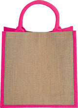 The Medium Jute Gift Tote features an open main compartment with a secure hook-and-loop closure to help protect your belongings. With lightweight jute construction and sturdy double 14" handles, this medium-sized tote bag is easy and comfortable to carry anywhere. Use it to transport notebooks, smartphones, keys, snacks, and other on-the-go essentials. 7.5" D x 11.75" W x 11.75" H