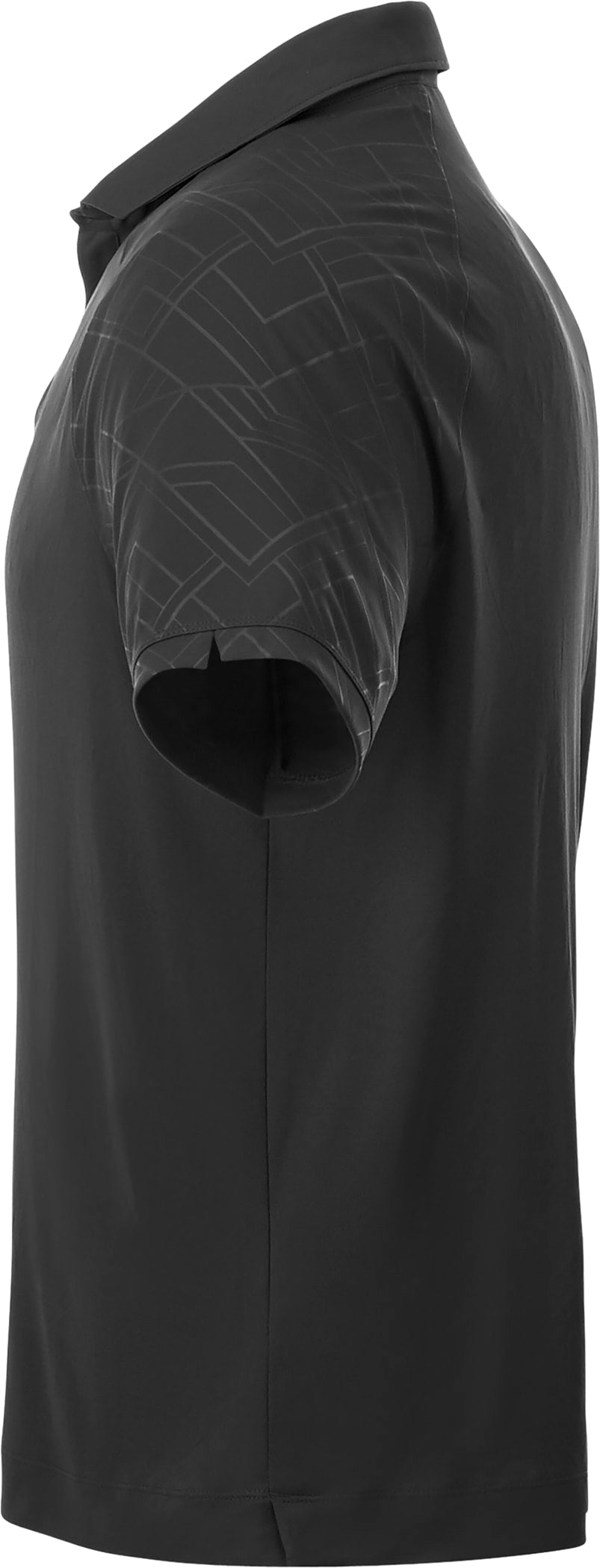 The Men's Hakone Short Sleeve Polo is on-trend, but still versatile enough for any industry. With a subtle graphic pattern on the sleeves, this style provides a unique look, with a moisture wicking and breathable finish. The Hakone is also snag-resistant and provides UV protection (UPF 40+).