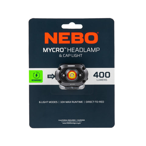 The MYCRO Headlamp is a rechargeable headlamp and cap light that includes an adjustable head strap. Small enough to fit in the palm of your hand, this powerful light features an impressive 400 lumen Turbo Mode. 6 different light modes: Turbo, High, Medium, Low, Green, Red. Also avaiable in the color Mossy Oak (Item# NEB-HLP-1004) Padprint. Boxed.
