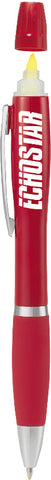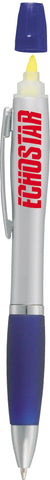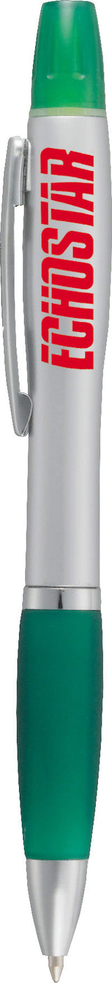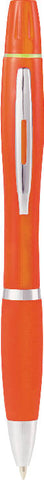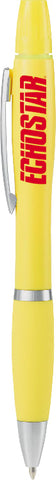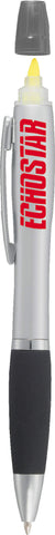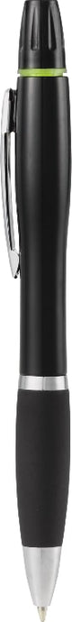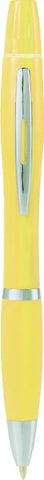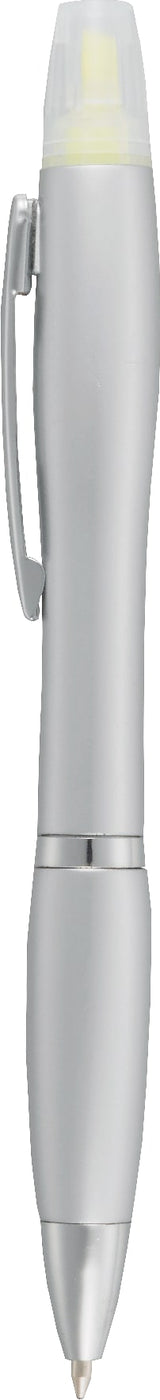 The Nash Ballpoint Pen-Highlighter features a ballpoint pen and yellow highlighter with a removable cap. 1.0mm pen tip and black ink. 5.62" D