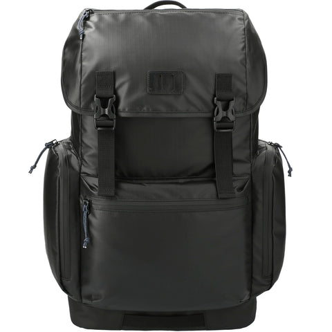 The NBN Recycled Outdoor Rucksack is the perfect bag for hiking all day or commuting to and from the office. This eco-friendly backpack features a cinch closure main compartment that buckles shut to keep your belongings safe. The main compartment features a padded laptop sleeve and zippered mesh pocket, as well as an accessory pouch to help you stay organized. Keep items handy in the zippered front pocket, which features internal organization pockets. This backpack also has two zippered side pockets: one that's PEVA-lined to keep your water bottle cold and one that gives you easy access to your phone. Through a partnership with 1% For The Planet, one percent of sales of all EcoSmartr products are donated to environmental nonprofits. 5" D x 12.5" W x 19" H