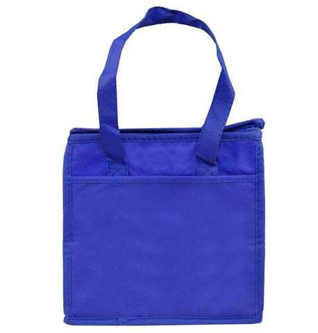 It is made of 80GSM non woven shell with reflective foam insulation. Features built in collapsible 6 pack divider, top zip closure, carry handles and front pocket. 9" W x 9" H x 6.5" D