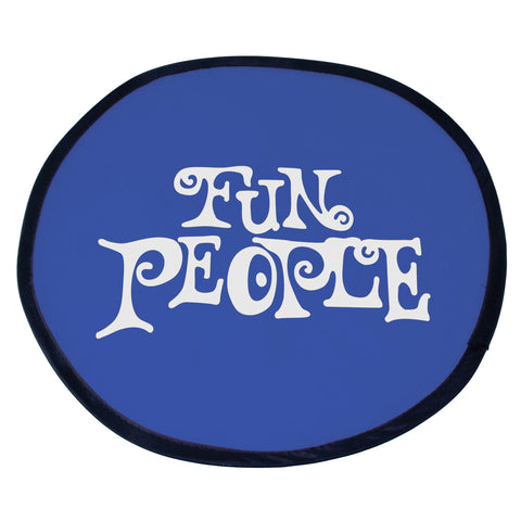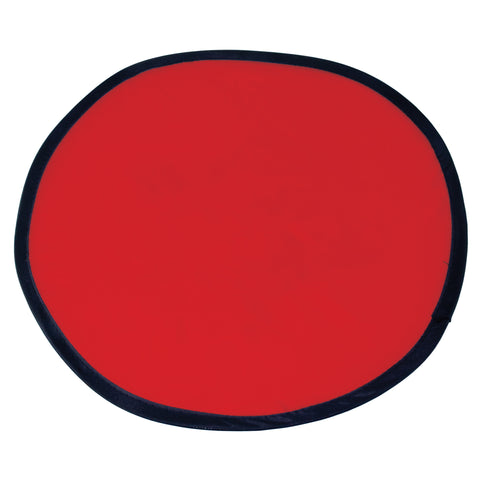 Lightweight nylon flyer has a big 7" imprint area to showcase your logo! Folds conveniently into matching color sack, making it a convenient and easy family fun or tradeshow giveaway. Pouch is not imprintable. Complies with CPSIA, Prop 65. 9 3/4" Diameter