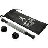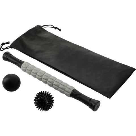 Relax and recover after a long day or tough workout with the Oasis 3-Piece Massage and Recovery Kit. It includes all the essential items you need to increase blood flow, help prevent injury, reduce muscle pain, assist muscle recovery, and improve your quality of life. The kit comes with a soft TPE spikey ball, a PVC solid ball, and a muscle roller stick that all fit inside the included carrying bag for convenient recovery on the go. 0.01" D x 18.5" W x 7.08" H