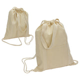 Orion 5 oz 50/50 Recycled Cotton Drawstring Backpack is the perfect item to promote your brand with an eco-friendly product. This natural color drawstring backpack is made of 50% recycled cotton and 50% cotton and has a pocket on the front for quick access with 22-inch matching carrying handles. Complies with Prop 65. 13.875" L x 0.25" W x 17" H