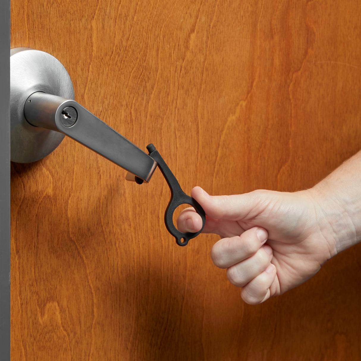 The Pacific 26oz Aluminum Sports Bottle features single-wall construction, a twist-on lid and includes a no contact tool attached to the lid. This keychain tool helps to avoid contact with dirty contaminated surfaces. This multi-purpose tool can be used when opening doors pressing buttons using the ATM and carrying shopping bags. Made from reinforced nylon. Hook shape designed to grab a handle and open doors. Rubber stylus can be used on signature pads ATMs and cellphones or tablets. This tool. 2.83" D x 2.83" W x 9.80" H
