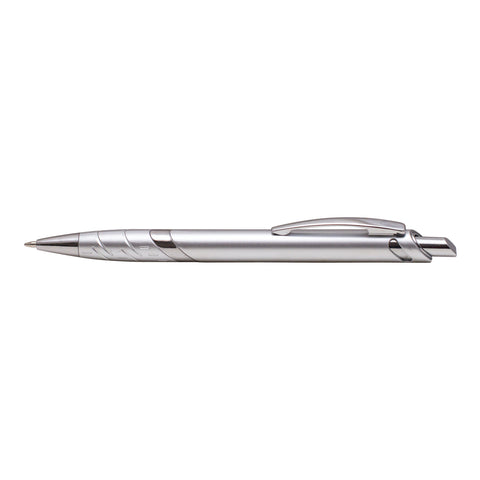 The Pismo Metallic is a plastic retractable ballpoint pen that offers metallic appeal at every angle—from the chrome plunger, clip and accents, to the modern metallic finish barrel. The Pismo Metallic offers the appeal of metal in the form of a plastic pen. Customize with a 1-color silkscreen imprint. Complies with Prop 65. 5.69" L x 0.44" W