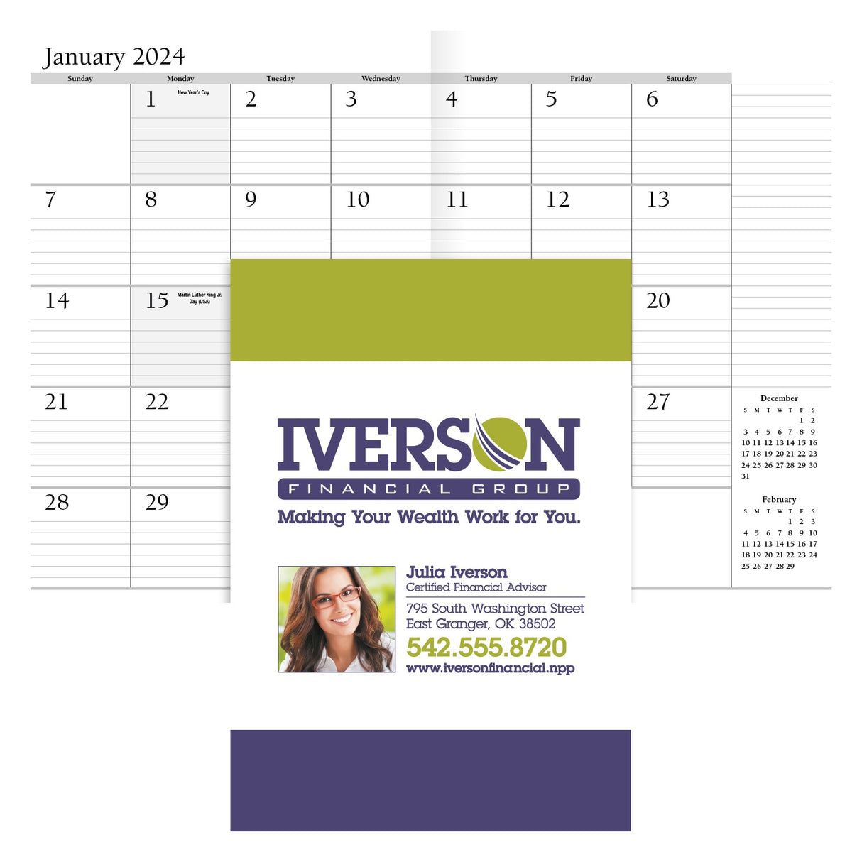 6.5" W x 9.5" H on outside Front Cover and Outside Back Cover