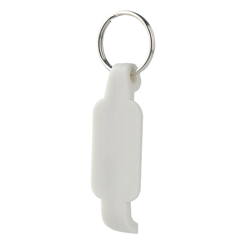 Key holder with plastic bottle opener. Make a great promotional gift advertise beverages, bars, and restaurants! Complies with CPSIA, Prop 65. 7/8" H x 2 1/2" W