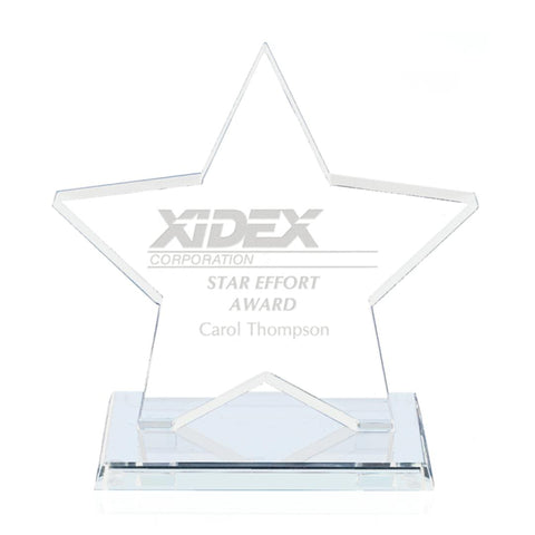 An aquashaped 6" starfire star on a starfire base, a simple but elegant performance award.
