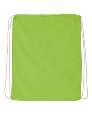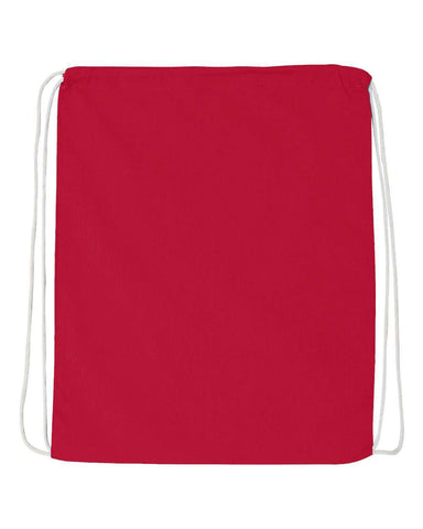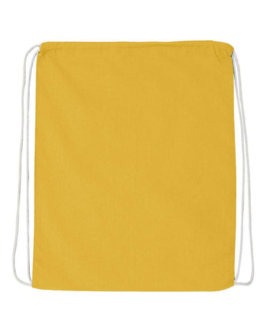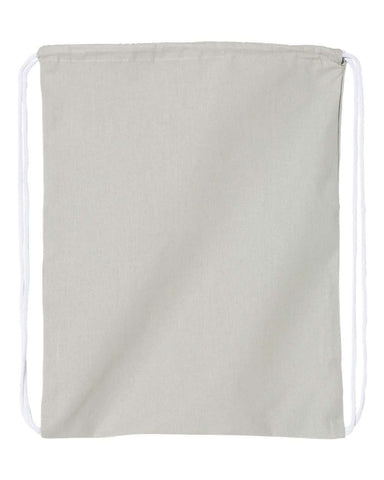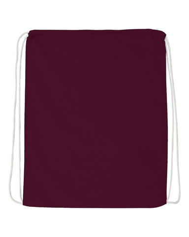 Made of 6.0 Oz., 100% cotton sheeting and drawcord cinch rope closure. Complies with Prop 65. 14" W x 18" H