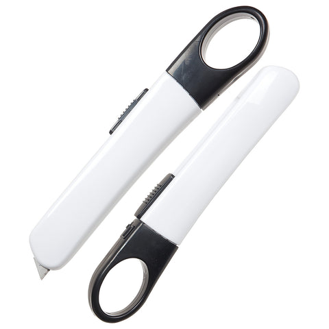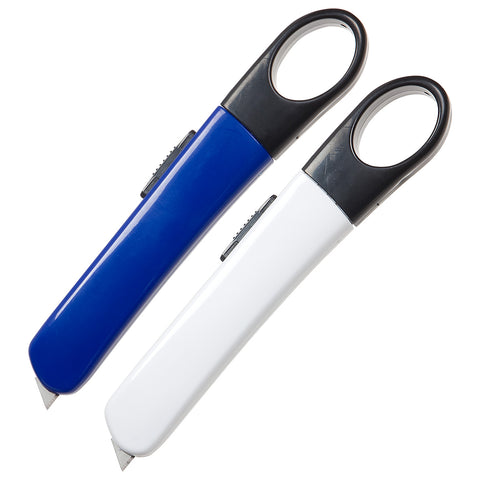 Retractable blade for added safety, Adjust blade length with easy thumb slide, 8-piece quick-sharp detachable blade system, Sturdy ABS plastic. Complies with Prop 65. 1" L x 0.625" W x 5.625" H