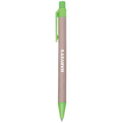 Spiral bound jotter with 80% recycled cardboard & colored linen cover includes 100 sheets of lined paper. Elastic pen loop on side to store matching recycled pen (item#PE4772). Elastic cord provides secure closure, and the recycled logo debossed on back cover. Complies with Prop 65. 5" W x 7" H x 0.75" D