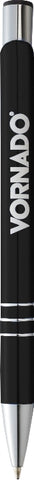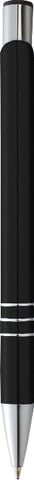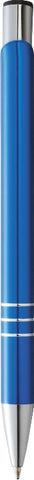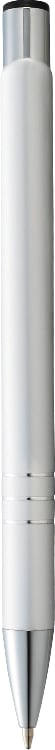 Classic high gloss styling with triple chrome ring detail. Includes premium blue ballpoint ink cartridge. 1.0mm pen tip. Click action mechanism. Laser 360 is available on this style. Laser finish is matte white. Complies with Prop 65. 0.00" D x 0.00" W x 5.33" H