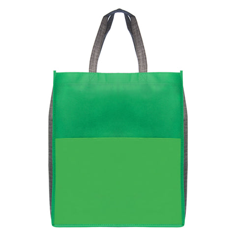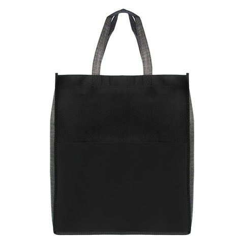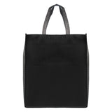 Call attention to your brand with the Rome Tote. For an upscale look, this tote features stylish side panels and handles in black with silver stitching. The water-resistant 80 gsm non-woven material, large front pocket made of 210D polyester, and reinforced handles, give this tote a strong level of quality at an attractive price point. Your imprint will really pop when imprinted with ColorJet, our vibrant, digital Full-Color inkjet direct imprint. Complies with Prop 65. 13.78" W x 16.34" D