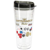 Our Seabreeze 22 oz Tritan® Tumbler with Translucent Lid is a durable, double-walled insulated cup. Turn-tab lid, available with optional straw for $0.25(G). Microwave and freezer safe. Top-rack dishwasher safe. Metallic inserts are not microwaveable - includes warning sticker. Cup holder friendly. Lifetime replacement guarantee. BPA free and FDA approved. Must be ordered in exact case quantities. Perfect for events, summertime, outdoors, boating and more. Best of all, it is Made in the USA. Tariffs do not apply. Complies with FDA, Prop 65. 8.5" H x 3.625" Diameter