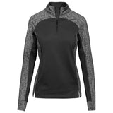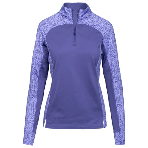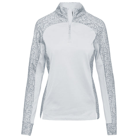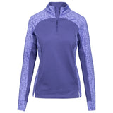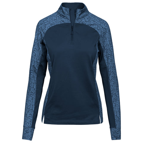 Women's Midlayer featuring: 88% Polyester, 12% Spandex,Embossed contrast print, Mock neck, Quarter zip front, Raglan sleeve with yoke, Front slits Layer up in the Siren midlayer and play on in cooler temperatures. This midlayer features a unique embossed print on the upper chest and arms, a zip-up mockneck, and a lightweight fabric blend that lends day-round stretch.