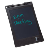 Slate 6.5" LCD Memo Board is a reusable and paperless electronic memo board that is ultra-thin and lightweight. The pressure-sensitive LCD writing surface displays lines of different thickness based on how hard you push and background surface is one color. Erase screen with front button and use the anti-erasure lock to prevent accidental clearing of the screen. Stylus snaps into tablet for storage. Multiple mounting options. Powered by 1 replaceable button battery, inserted. FCC certified. Complies with OU, Prop 65, UN38.3. 4.25" L x 0.125" W x 6.625" H