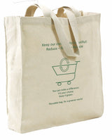 Made from biodegradable 11 Oz. cotton canvas. Durable and ideal for carrying heavy items. Seams are top-stitched for durability. It has 24" long self material carrying handles. Timeless shopper styling. 14" W x 15" H x 4" D