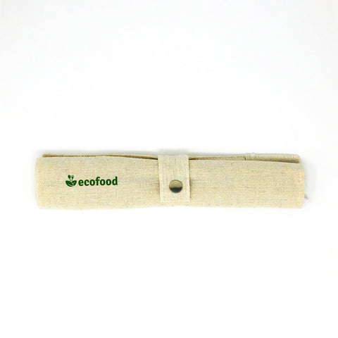 It's the perfect lunch accessory for those brown baggin' it. Sturdy stainless steel material is durable & long lasting. Set includes two chop sticks, one straw with a cleaning brush, one knife & one spork. The set comes in a handy jute case that holds the utensils in place & rolls up. Great for camping, hiking, & every day! Complies with Prop 65. 2" W x 10" L x 1" H