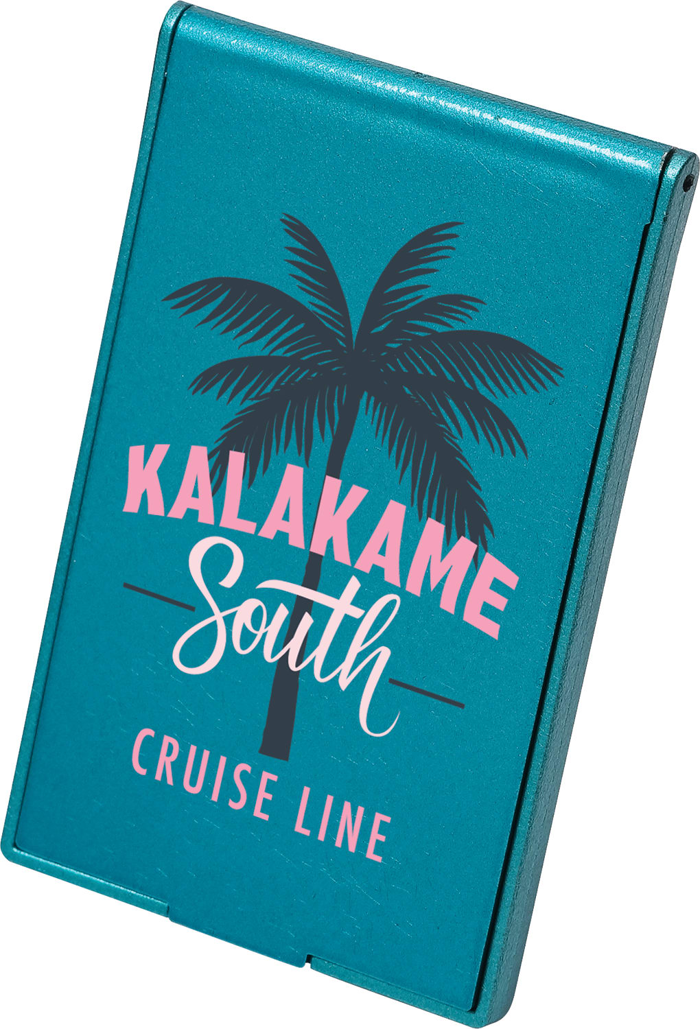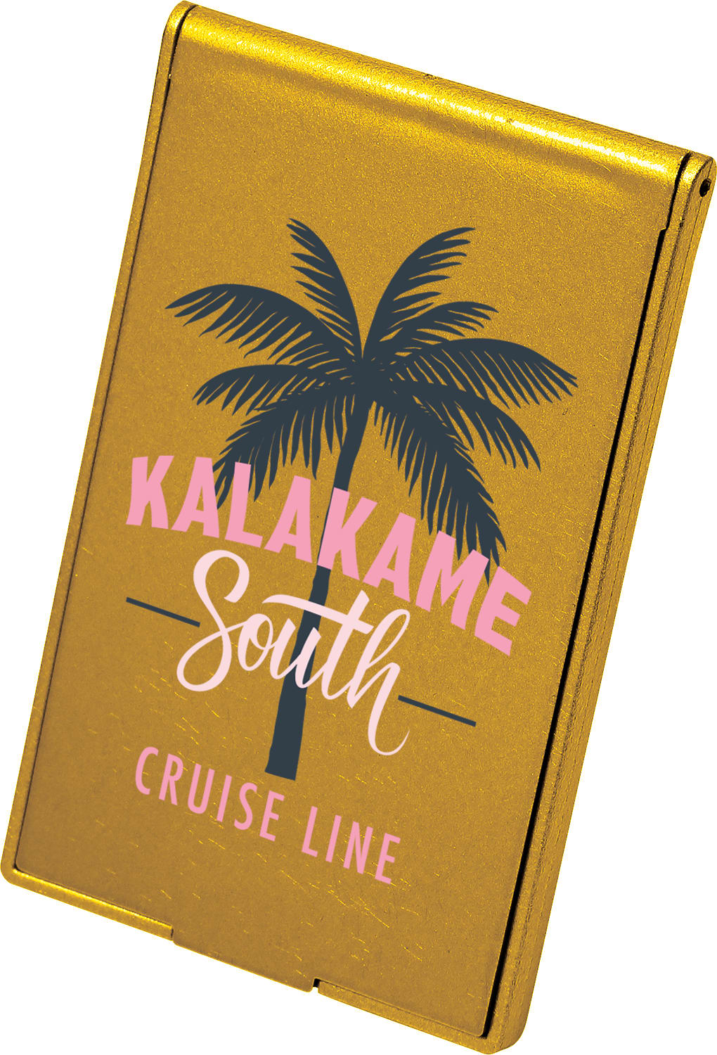 The Bullet Stand-Up Pocket Mirror has a flip-top cover that converts into a mirror stand. This customizable stand-up mirror is great for travel and compact enough for everyday use. 0.25" D x 2" W x 3.25" H