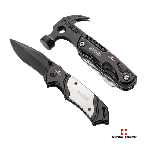 The ultimate multi-tool gift set for the fixer in your life. Featuring the SwissForce® Saracen Pocket Knife combined with the SwissForce® Nomadic Multi-Tool Hammer/LED and packaged in a gift box for a special presentation.