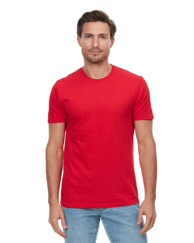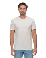 4.5 oz, 100% preshrunk ringspun cotton jersey; 30 singles; Heather Grey: 90% cotton, 10% polyester; Made from sustainably sourced USA cotton; Narrow, set in 1x1 rib collar; Self-fabric shoulder to shoulder neck tape for added comfort; Double-needle sleeve and bottom hem; Modern Fit; Tear-away label;