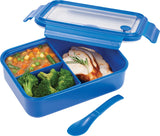 The Three Compartment Food Storage Bento Box is perfect for packing a healthy meal.This BPA-free container features sections for a main dish and two sides. The bento box includes foldable spoon. Handwash only. 2.89" D x 6.08" W x 8.39" H