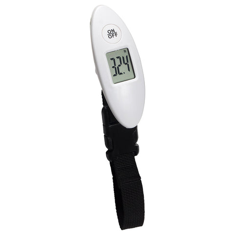 Measures up to 88 lbs/40 kg, Auto reset and power on/off button, Web strap with plastic clip for easy luggage attachment, Blue backlight display, Made of sturdy ABS plastic. Complies with Prop 65. 1.5" L x 4" W x 1" H