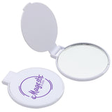 Thin, compact and lightweight, Fits easily into purse, backpack or carry on, Hinged lid protects mirror. Complies with Prop 65. 2.5" L x 2.5" W x 0.25" H