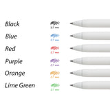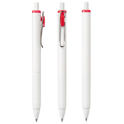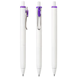 Stylish design features a smooth barrel with a rubberized comfort-grip. The newly developed uni-ball® one ink uses a bead packed pigment that is designed to sit on the top of paper instead of being absorbed into it resulting in a darker appearance. Fast drying and bleed resistant. The functional metal clip acts as a paper clip and easily attaches to a notebook or loose papers. Point size: 0.7 Mil. Ink matches accent color. 5.5" H x 0.375" W x 0.5" D