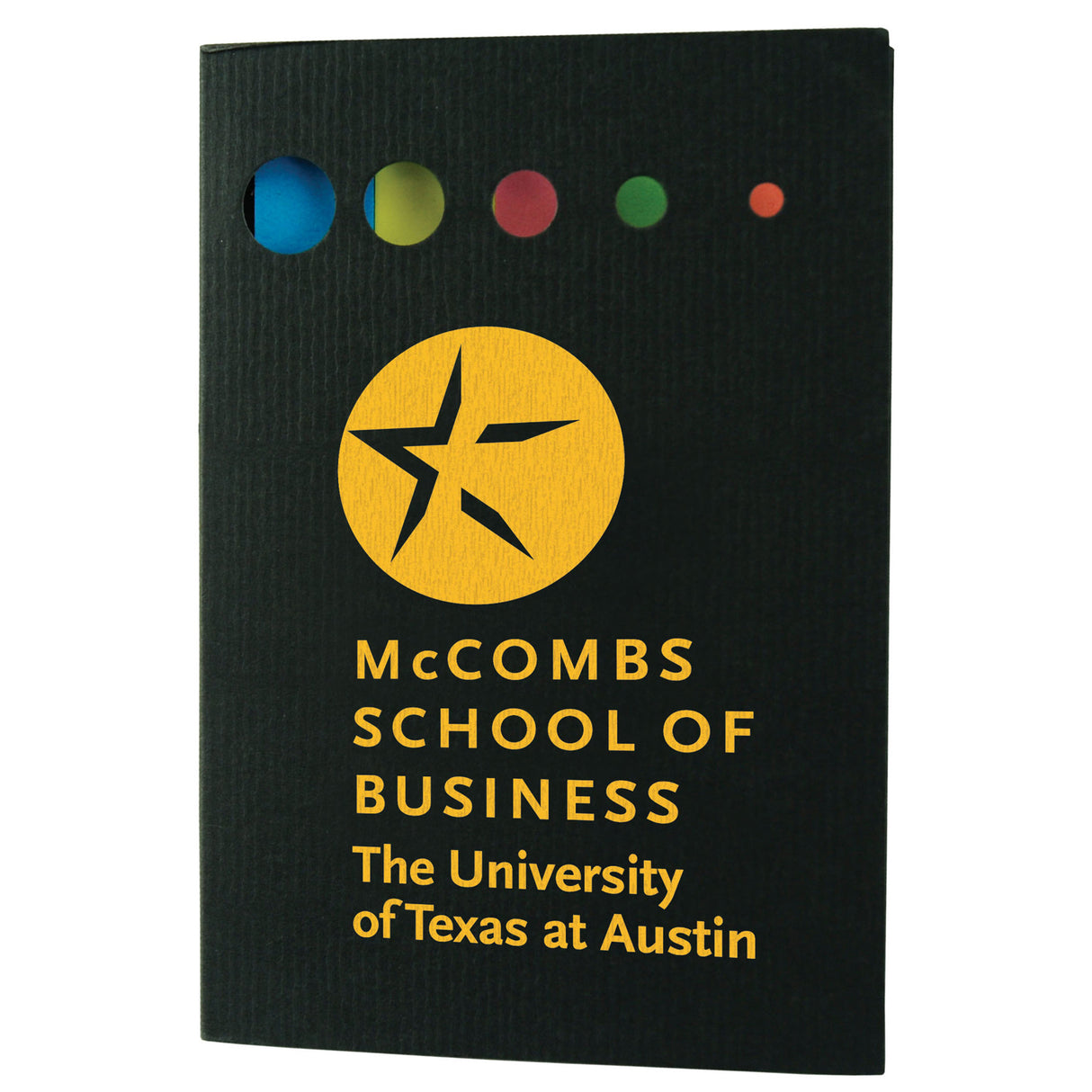 Universal sticky note booklet. A different and memorable gift idea for consulting agencies, law firms, and more. Complies with CPSIA, Prop 65. 3 3/8" W x 4 7/8" H