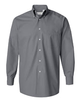 This soft silky blend is also wrinkle-free for all day good looks, tailored with double-needle stitching. Made of 3.4 Oz., 60/40 cotton/polyester. Features button-down soft-fused collar, single needle stitched armholes and double-needle stitched felled side seams. Also it has two pearlized buttons on adjustable cuff with button-through sleeve placket, left chest pocket, and back box pleat. Complies with Prop 65.