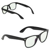 Vista Blue Light Blocking Computer Glasses are adult-size glasses with ABS Plasitc frames and polycarbonate lenses. The lenses help reduce exposure to blue light (mostly found in tech items such as computers, tablets and phones) which can cause strain to the human eye. The wavelength of blue light can be harmful to the retina (usually discomfort) and can affect sleep. FDA compliant. Complies with Prop 65. 5.75" L x 5.625" W x 1.875" H