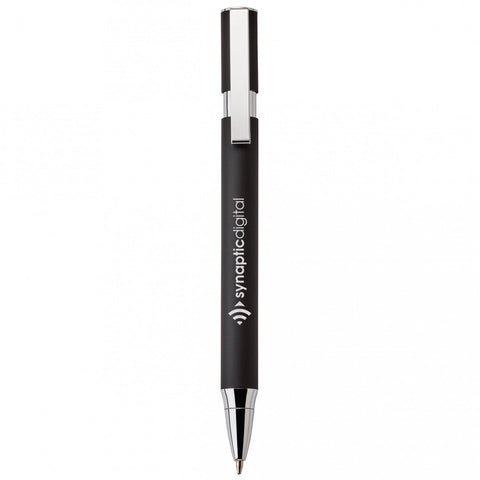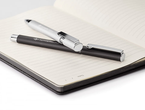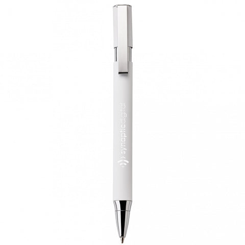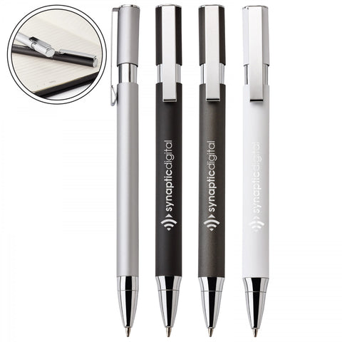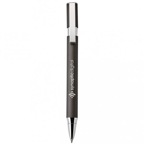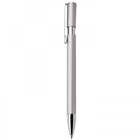 Aluminum push-action pen with oval shaped barrel. 5.7500" L x 0.0000" W x 0.0000" H